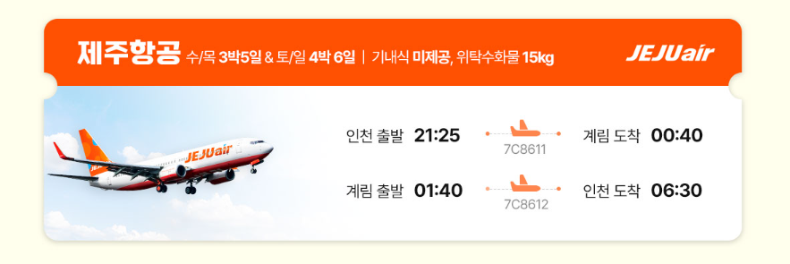7C8612 현지출발: 01:40 - 한국도착: 06:30