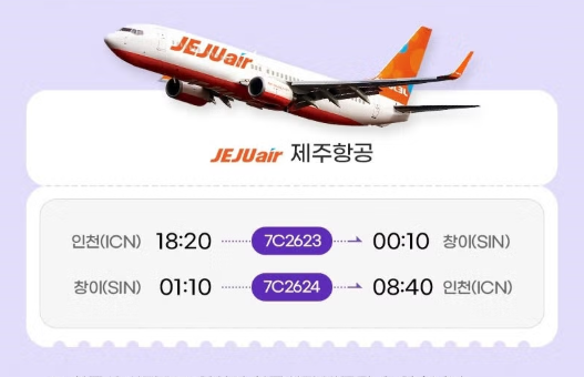 ■ 인천출발 3박5일/제주항공 7C2623 인천출발 18:20 - 싱가포르도착 00:10 7C2624 싱가포르출발 01:10 - 인천도착 08:40