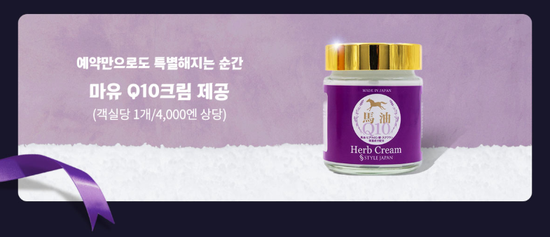 마유 Q10크림 제공 (객실당 1개/4,000엔 상당)