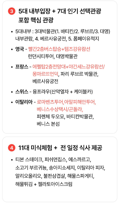 5 대내부 : 3대박물관(1. 바티칸/2. 루브르/3. 대영) 내부관람, 4. 베르사유궁전, 5. 폼페이유적지
