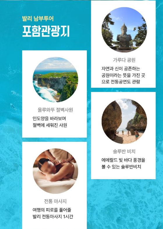 2일차: 호텔 조식 후 ?가루다공원-울루와뚜절벽사원-슬루반비치-전통마사지1시간-호텔 투숙 및 휴식