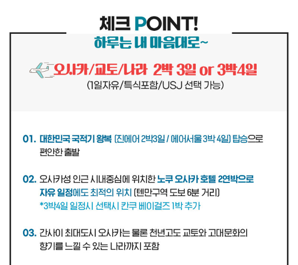 04. 1일 자유 포함으로 패키지와 자유여행의 장점을 한번에 [USJ 선택 가능)