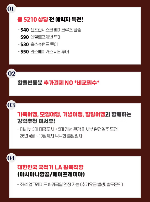 2. 가족여행, 모임여행, 기념여행, 힐링여행과 함께하는 강력추천 미서부!