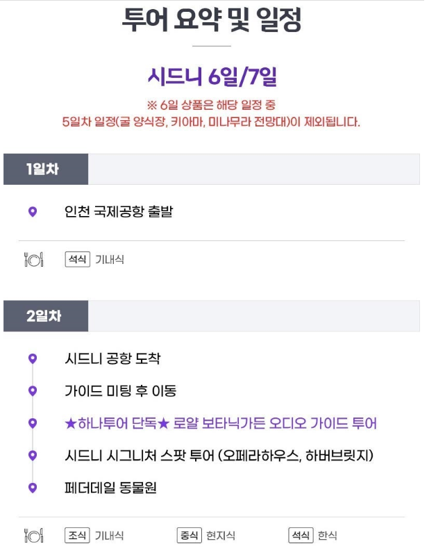 ② 시드니 7일 일정 (시드니 IN - 시드니 OUT)