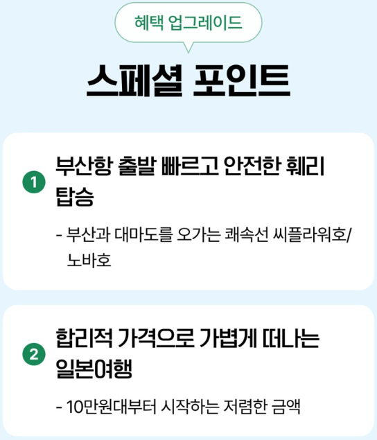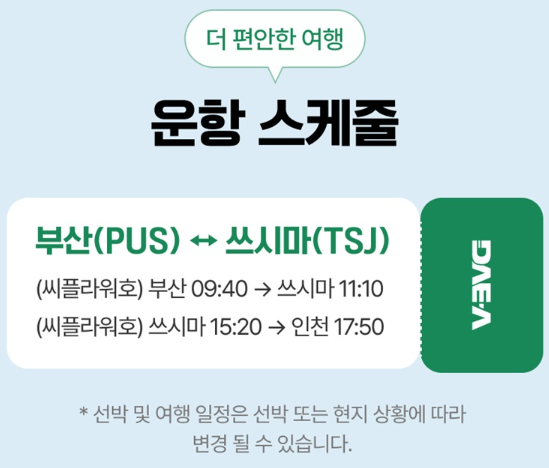 [월, 수, 일] 부산출발 09:40-11:10 대마도 도착 / 대마도 출발 15:40-17:10 부산도착