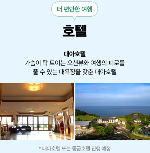 - 푸른 언덕과 바다 전망이 펼쳐지는 '대아호텔' 숙박 (또는 동급)