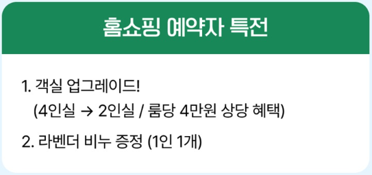 1. 객실 업그레이드! (4인실 2인실 / 룸당 4만원 상당 혜택)