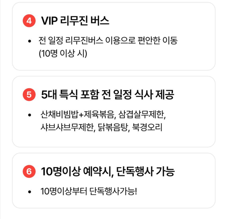 5. VIP리무진 버스 이동으로 더욱 편안한 이동(10명 이상 시)