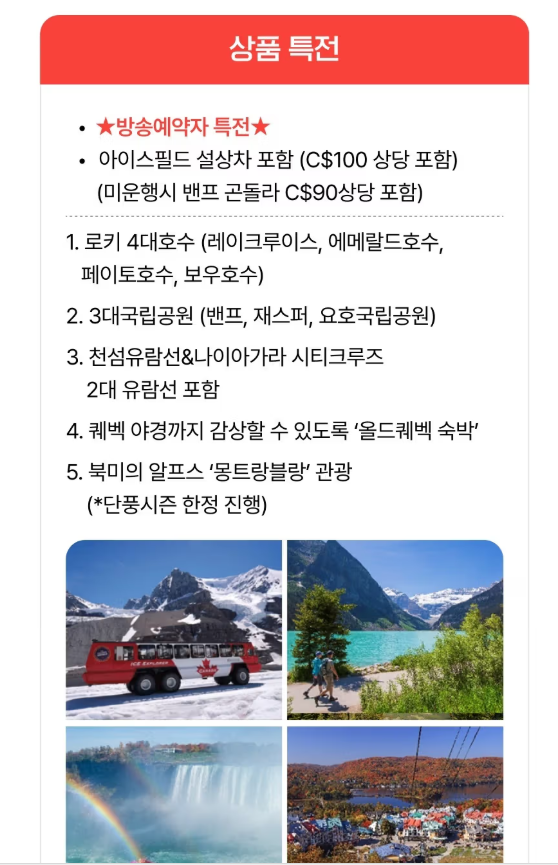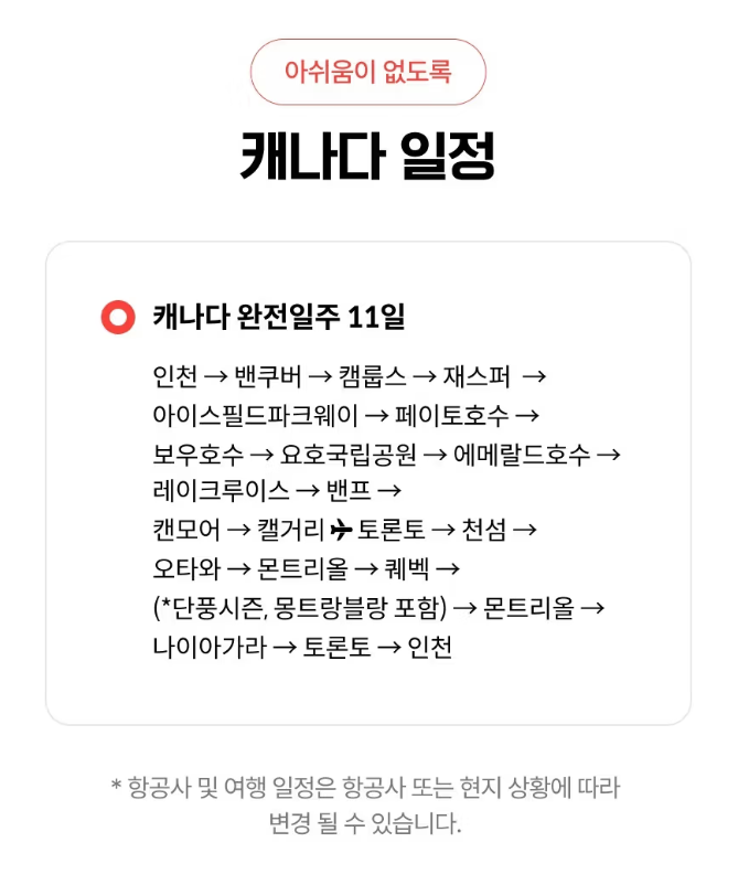 ⭐캐나다 서부+동부 여행 예약자 특전⭐