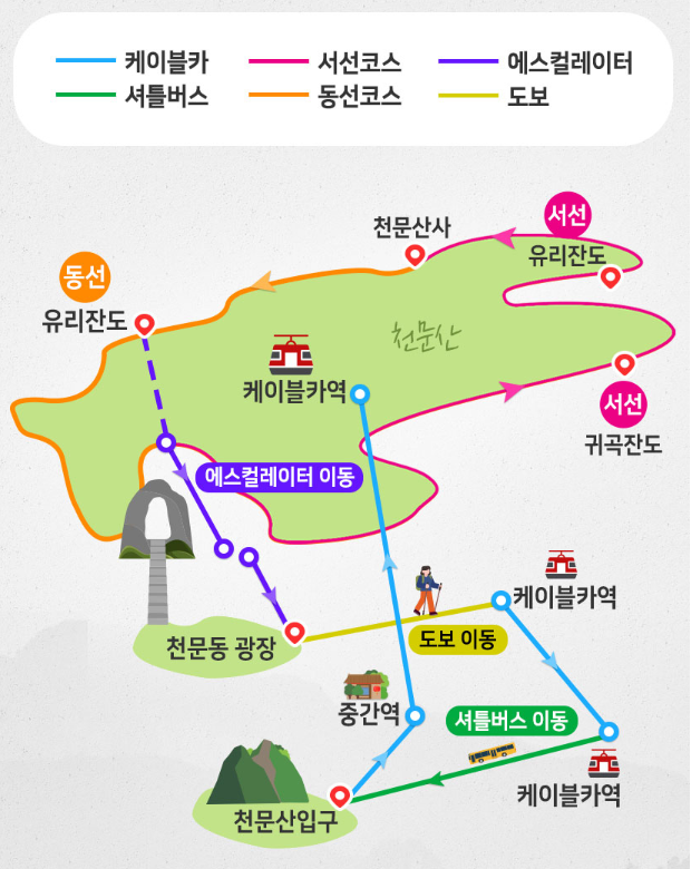 ▶천문동, 천문산사, 귀곡잔도, 유리잔도, 동선코스 등