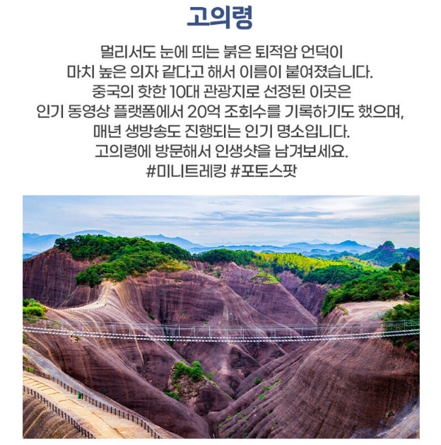 ■ 3일차 : 호텔 조식 - 소동강 이동 후 관광- 중식 - 고의령 이동 후 관광-마황구대협곡(차창)