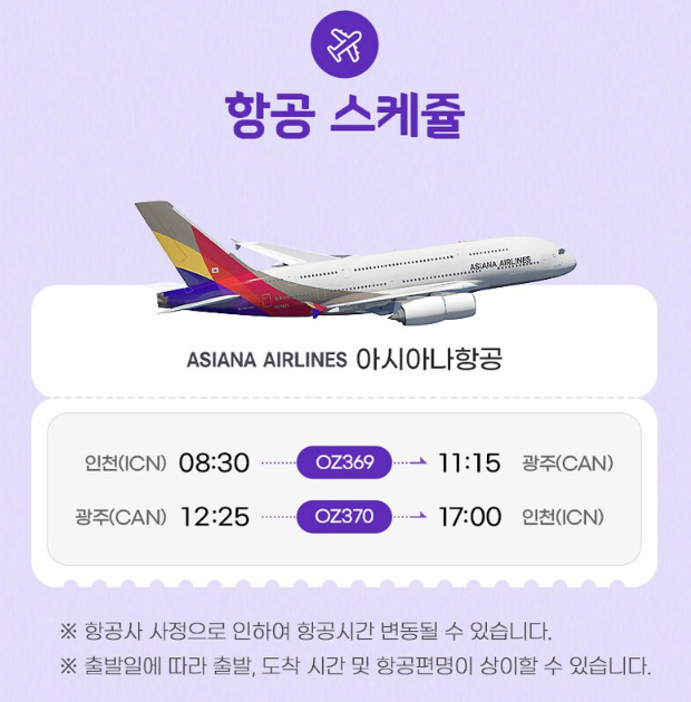 ※ 항공사 사정에 따라 항공편 및 스케줄이 변동될 수 있습니다.