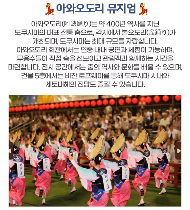 ✅400년 역사를 이어온 도쿠시마 전통춤, 아와오도리를 즐길 수 있는 아와오도리 회관