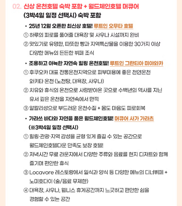 - 온천: 대욕장, 사우나, 웰니스휴게실 有