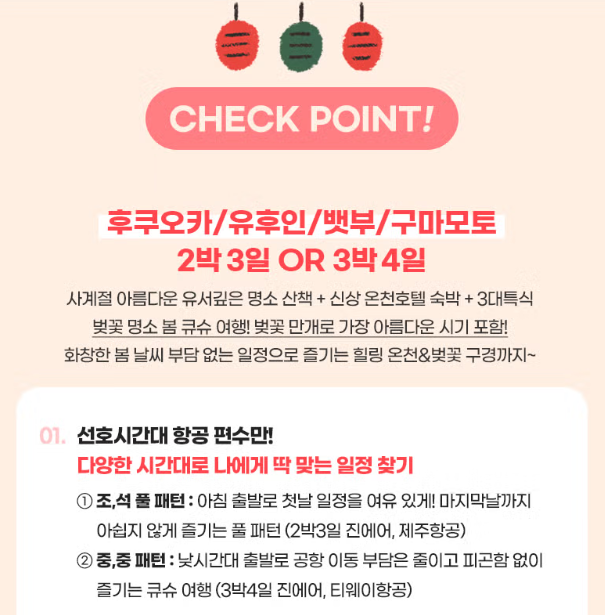 벚꽃+온천 힐링여행 큐슈 3/4일★NO옵션+NO팁★