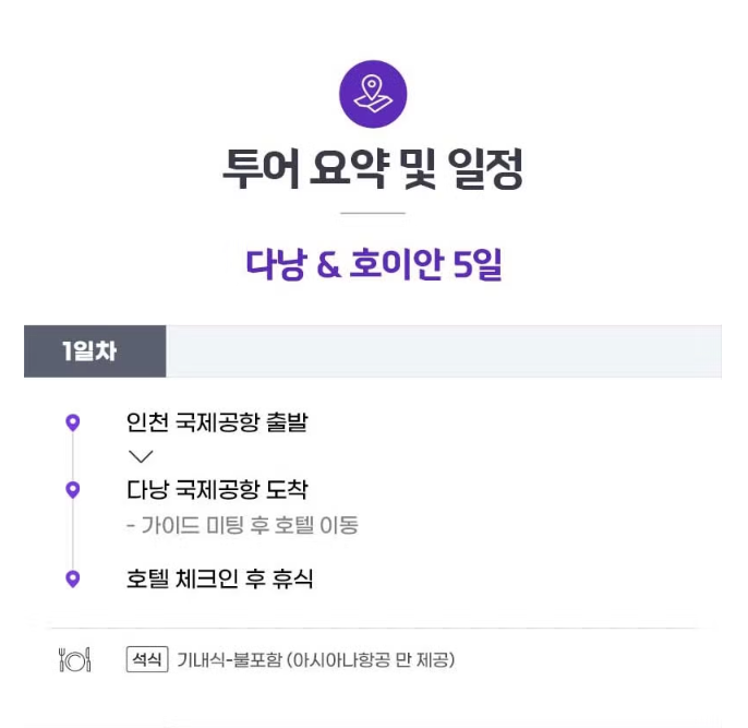 - 5일차: 다낭 국제공항 출발 인천 국제공항 도착 식사 조식 : 기내식-불포함(아시아나 포함)