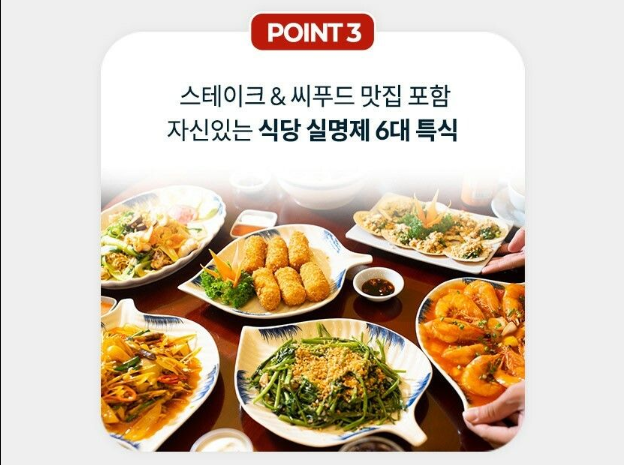 POINT 3 스테이크 & 씨푸드 맛집 포함 자신있는 식당 실명제 6대 특식