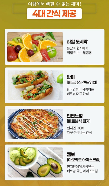 POINT 4 동남아에서만 즐길 수 있는 4대 간식 제공! 과일도시락+반미+겜보+반짠느엉