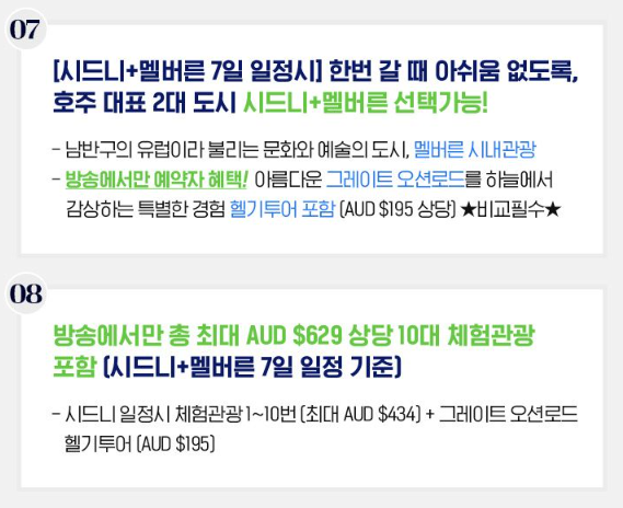 [시드니+ 멜버른 5박7일 오전 출발] 출발일 6/8 부터~