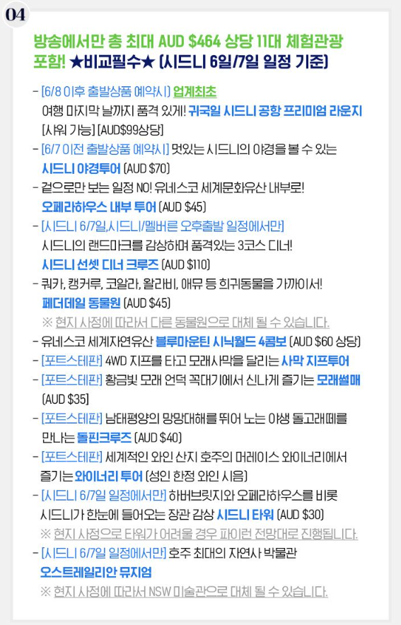 [시드니 4박6일 / 5박7일 오후 출발] 출발일 ~6/7 까지