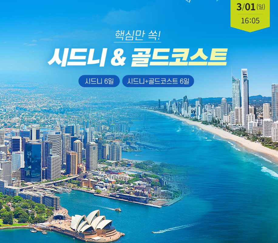 시드니 6일 또는 시드니+골드코스트 6일 NO팁 NO옵션
