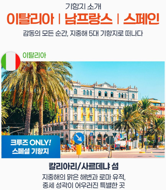 ⭐이탈리아/남프랑스/스페인 크루즈 여행 살펴보고 예약하기 - 모바일버전⭐