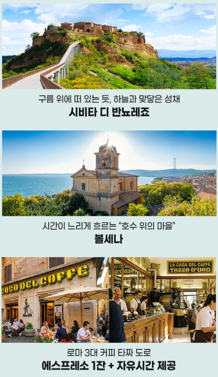 ③ 로마 시내 벤츠투어 / 콜로세움 & 포로 로마노(내부) 하이패스 관람 / 로마 3대 커피(타짜 도로) 에스프레소 1잔 / 시비타 디 반뇨레조 / 볼세나 관광 포함