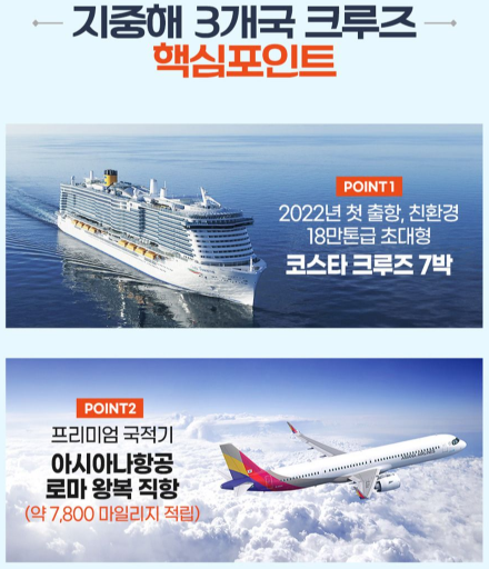 POINT ①. 아시아나 로마 왕복 직항 탑승 (약 7,800 마일리지 적립 가능)