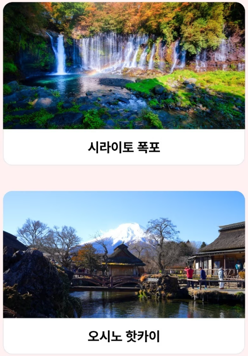 2일차 : 호텔 조식 후 후지산 전망대 휴게소 -> 시라이토 폭포 -> 오시노 핫카이 -> 미시마 스카이워크 체험