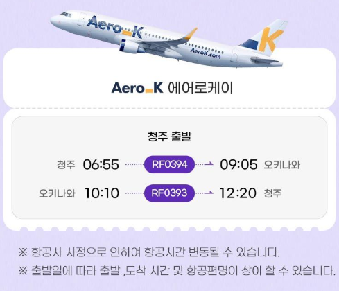 - 청주출발: 에어로케이항공