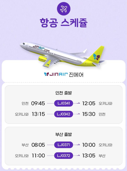 LJ0341 인천출발 09:45 - 오키나와도착 12:05