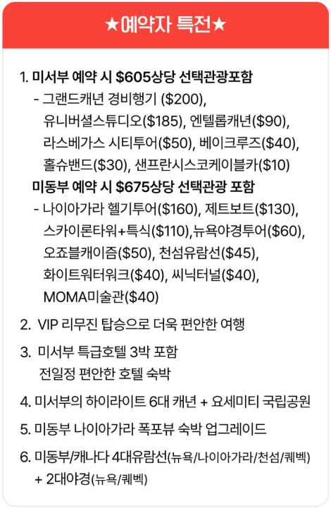⭐미서부 / 미동부+캐나다여행 예약자 특전⭐