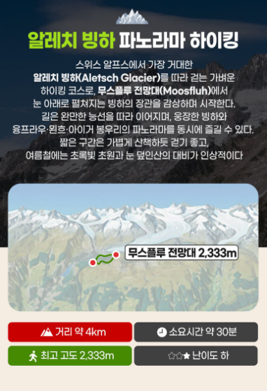 - ‘알레치 빙하’의 경관을 한 눈에 담으며 가벼운 하이킹 [약 30분 소요]