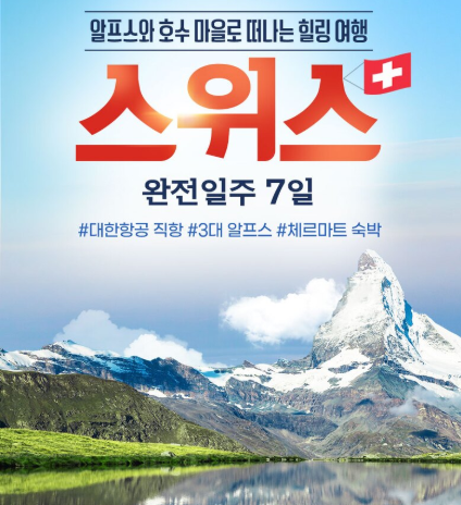 #현대홈쇼핑스위스여행 #HMALL스위스여행 #홈쇼핑스위스여행 #스위스홈쇼핑여행 #스위스가족여행 #스위스단체여행 #스위스단체관광 #스위스단독여행 #스위스단독행사 #스위스친목여행 #스위스지방출발여행 #스위스청주출발여행 #스위스김해출발여행 #스위스대구출발여행 #스위스부산출발여행 #스위스온누리상품권여행 #스위스여행할인 #롯데관광스위스여행 #스위스대한항공여행 #스위스국적기여행 #스위스대한항공직항 #스위스국적기직항 #스위스노쇼핑여행 #체르마트호텔