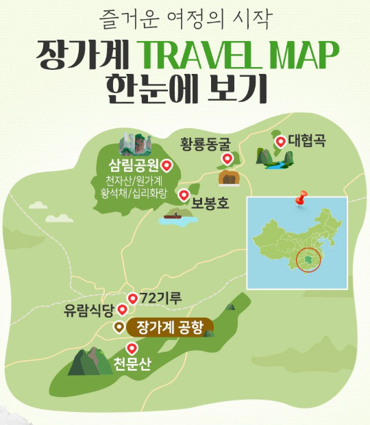 ▶ 왕복항공료, 호텔(2인 1실), 유류할증료 3월 기준 대한항공 장사, 무한(42,000원), 장가계(51,000원) 무한-장가계 연계(46,500원) 포함된 가격입니다.