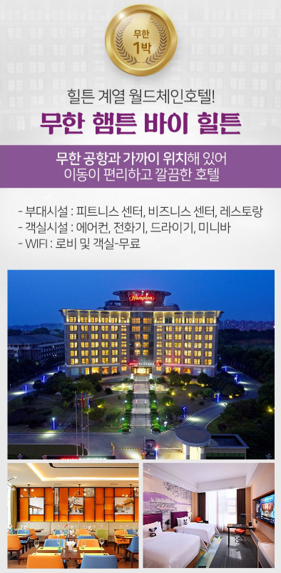 호텔 조식 - 공항으로 이동 - 무한 국제공항 출발 - 인천 국제공항 도착 (약 2시간 45분 소요)