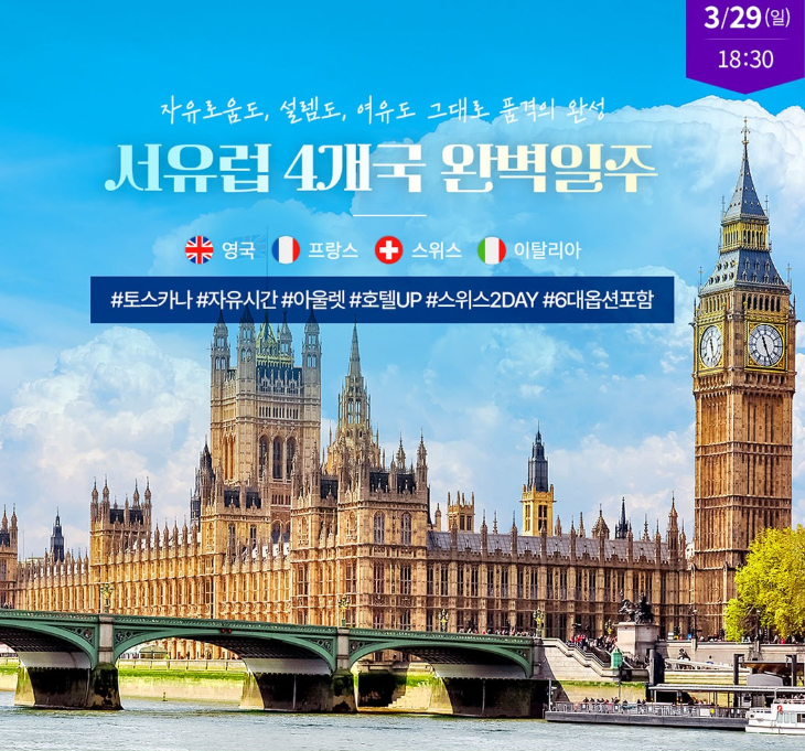 서유럽 4국 10일/12일 /대한항공 /월드체인호텔 스위스 - 영국 - 프랑스 - 이탙리아