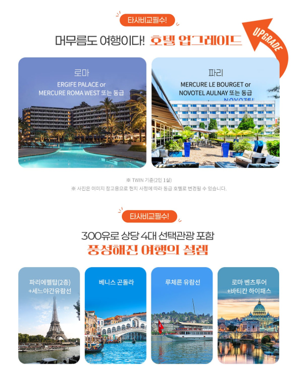 * 일정표에 표기된 호텔 숙박 및 조식 포함 (2인1실 기준)