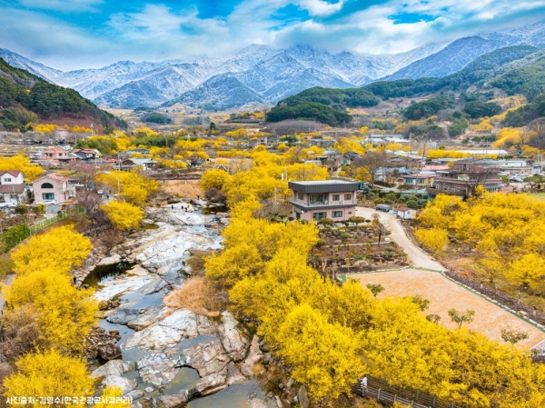- 돌담길과 계곡을 따라 예쁘게 핀 산수유꽃 구경하러 오세요~!