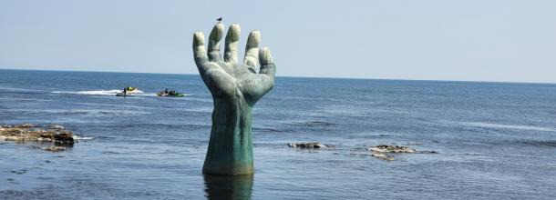 - 바다 위로 솟아오른 포항의 상징 ‘상생의 손’ 조형물