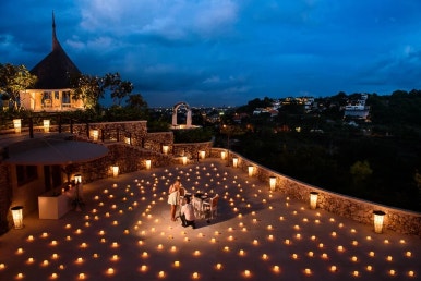 - 허니문 커플을 위한 로맨틱한 개인 다이닝 공간으로, 불빛이 켜진 길을 따라 가면 둘만의 특별한 식사를 즐길 수 있는 베일이 나옵니다.