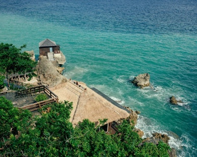 절벽 바로 앞에 위치한 풀빌라로 탁 트인 바다 전망과 프라이빗한 휴식 공간이 특징