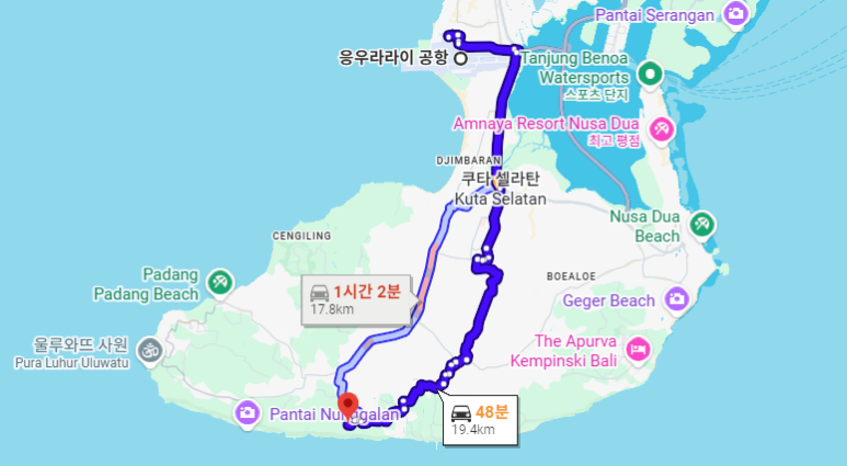 응우라라이 국제공항 → 리조트 이동