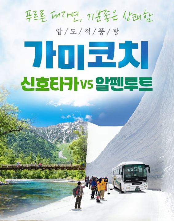[알펜루트 설벽]알펜루트/나고야 4일▶일본 북알프스 '가미코치 국립공원' 최저가 및 기간한정 프로모션 상품만 모았습니다. 하단 달력을 참고하셔서 출발 가능일자를 찾아보세요. 상품코드 D08A