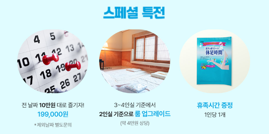 전 날짜 10만원 대로 즐기자! 199,000원 *제외날짜 별도문의