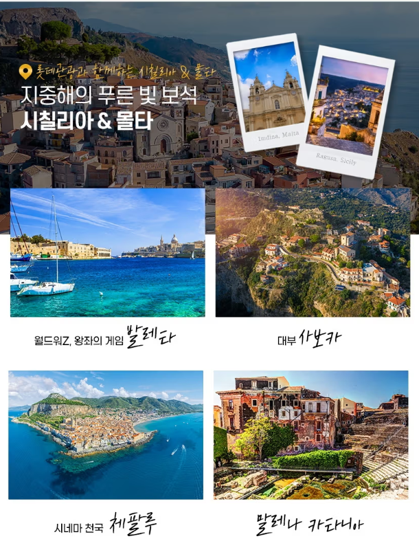 [실속][NO옵션&NO쇼핑][TK]『지중해의 숨은 보석』시칠리아 + 몰타 9/10일 최저가 및 기간한정 프로모션 상품만 모았습니다. 하단 달력을 참고하셔서 출발 가능일자를 찾아보세요. 상품코드 E01A-08621