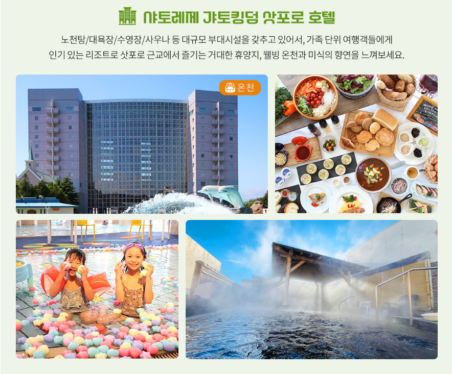 - 샤토레제 가토킹덤 삿포로 호텔 : 노천탕,대욕탕,사우나 등 모두 이용가능한 온천호텔