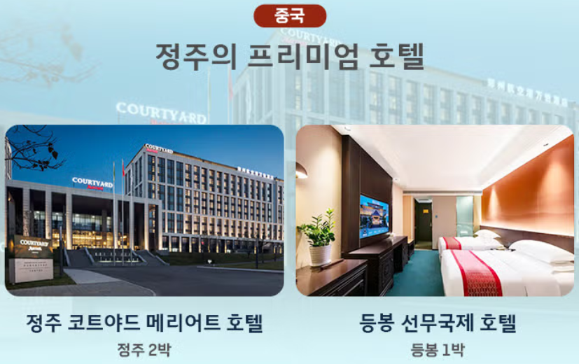 1. 정주 : 코트야드 메리어트 호텔 또는 동급 / Courtyard Mariott Zhenzhou Airport