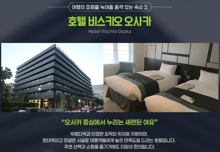 ▶ 호텔 : 호텔 비스키오 오사카 또는 동급(2인 1실)