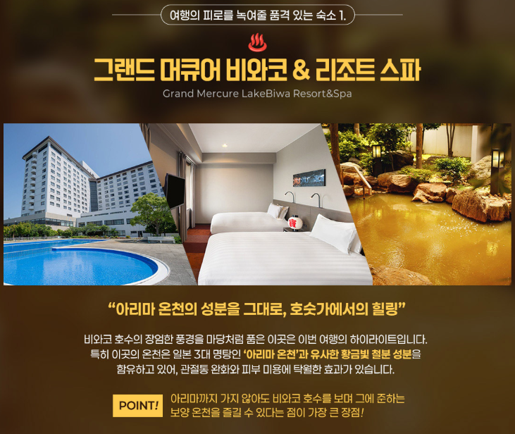 ▶ 호텔 : 그랜드 머큐어 비와코 리조트&스파 호텔♨ 또는 동급(2인 1실)
